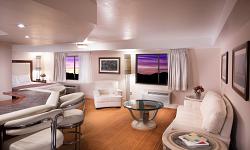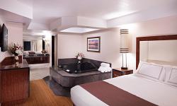 Nearly everything you could possibly want for a relaxing Peppermill stay is right here in our 770 square foot Bay Suite. This one-bedroom open layout suite has a separate living area perfect for hosting friends or just sitting back and relaxing. Each suite features a spacious in-room jetted tub for quite relaxation and an extended dry bar.